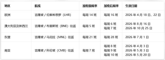 除东亚市场的重磅拓展外,马航同步推进全球核心航线的班次加密计划,覆盖欧洲、澳新、东盟、南亚四大区域,全面提升全球互联互通能力,满足日益增长的旅游与商务出行需求: